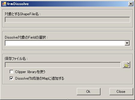 Dissolve解析に使用するShape fileはt_sfでMain formから受け渡されます。