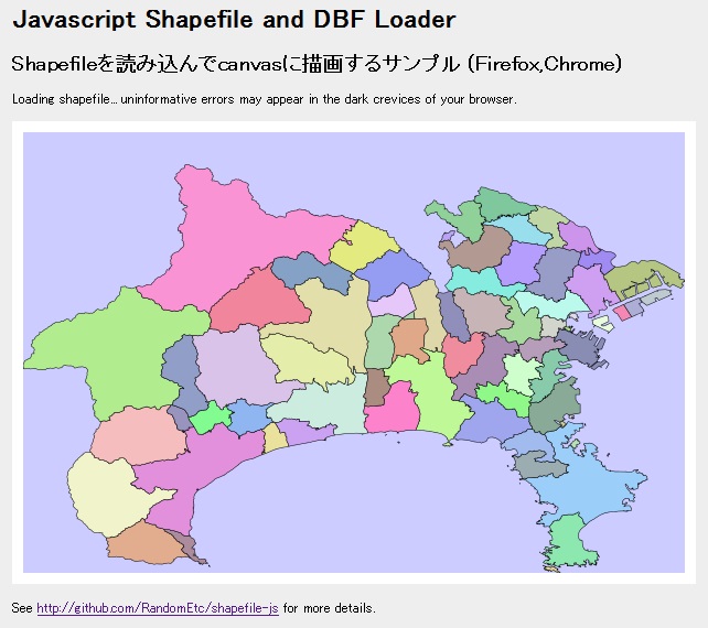 元ネタは、shapefile-jsで公開されているJavaScriptを使いました。