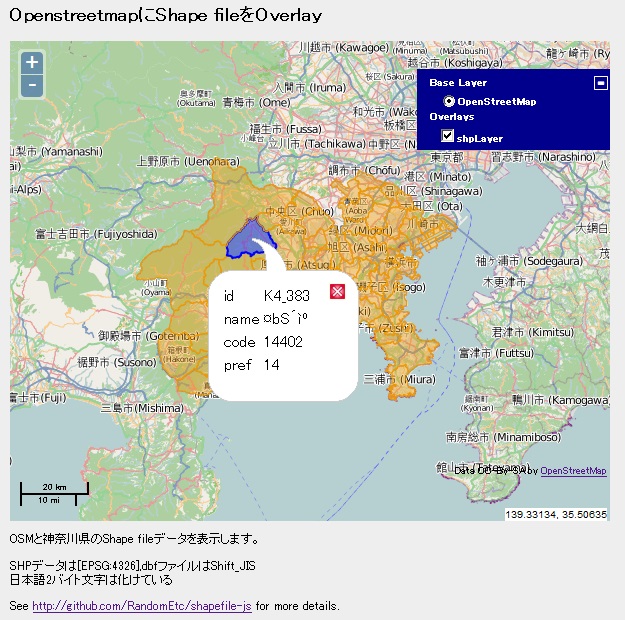 元ネタは、shapefile-jsで公開されているJavaScriptを使いました。