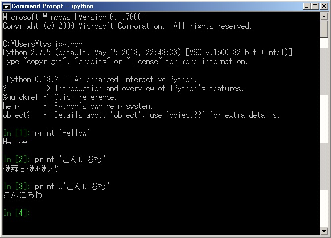 cmdターミナルでipythonと入力して、リターンキーを押すと、