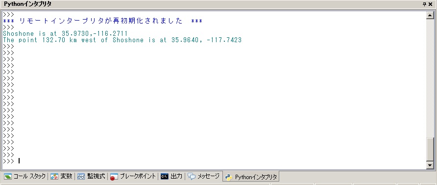 で、Shoshoneから西へ132.7kmの場所の緯度経度が表示されます。