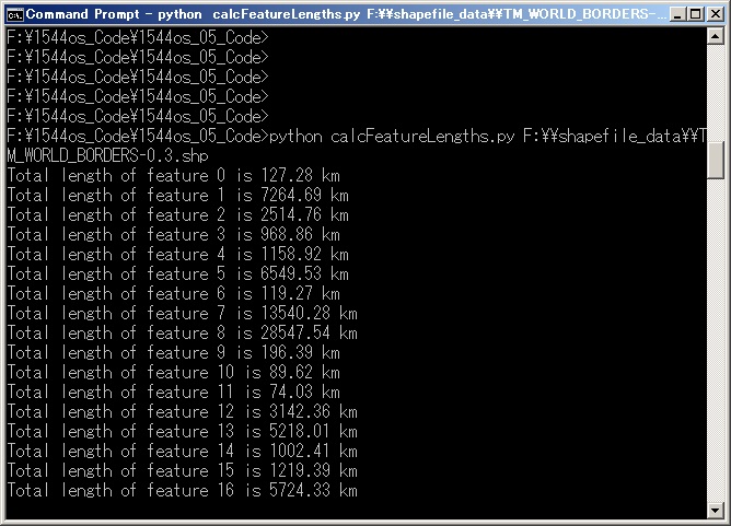 python calcFeatureLengths.py F:¥¥shapefile_data¥¥TM_WORLD_BORDERS-0.3.shp