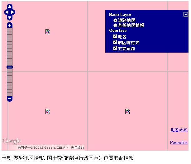 基盤地図情報とGooglemapをbasemapとしてwmsのデータをoverlayさせます。