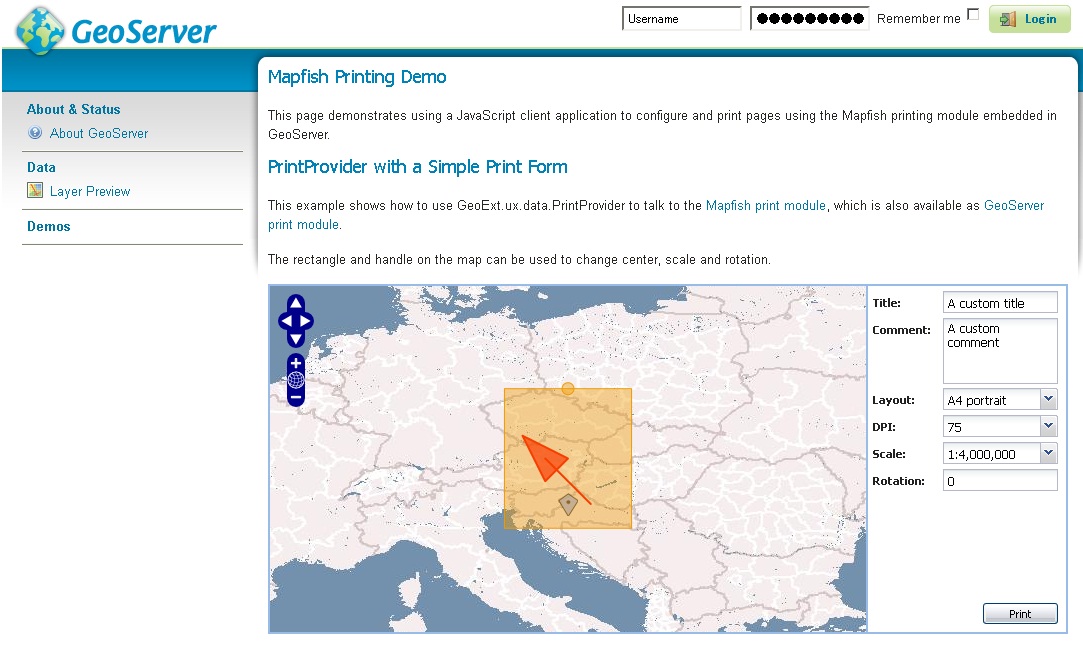 とりあえずは、GeoServerとPrint moduleもinstallできているようです。