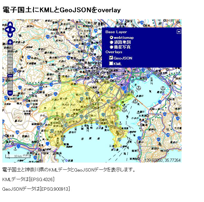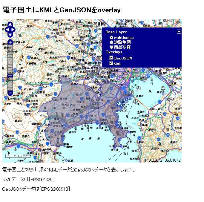 電子国土とKMLとGeoJSONのOverlay