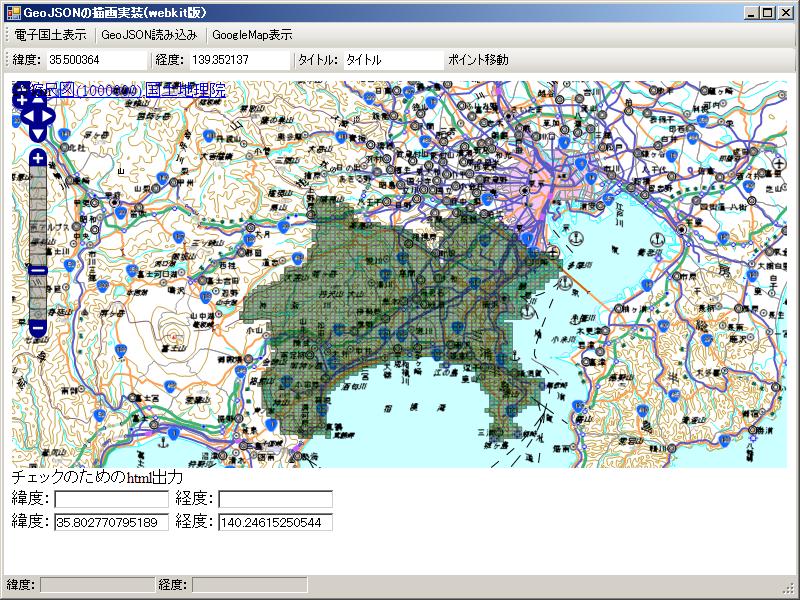 電子国土地図にGeoJSONを重ねてみる。[Chapter 1]では.NET標準のwebbrowserコントロールを使いましたが、ちょっと大きなGeoJSONファイルを読み込むと「ハングアップしたのではないか?」と思うくらいに描画遅くなります。