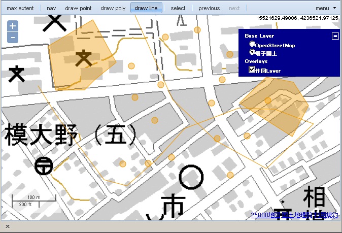 表示するmapの作成(Baselayerは、OpenStreetMapと電子国土)