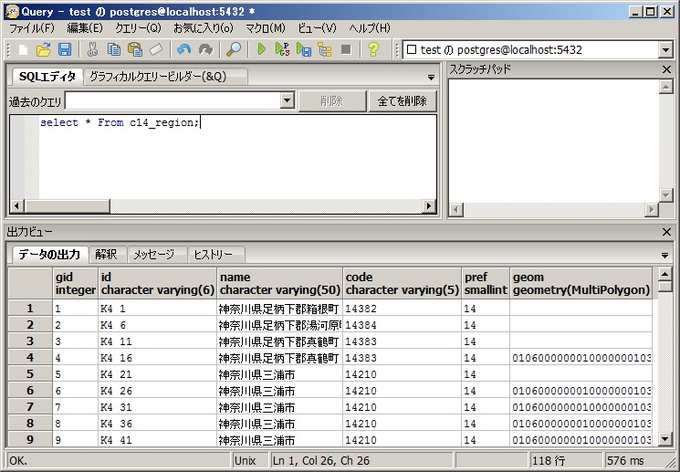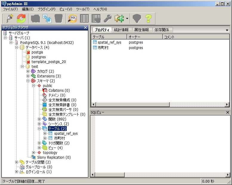Installが終わり、PostGISが動いていることが確認できたならば、ShapefileをPostgreSQLにImportしてみましょう。
