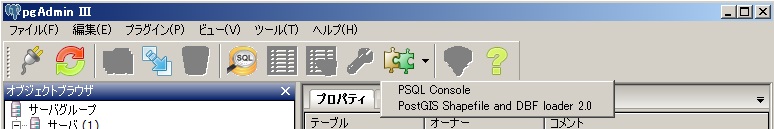 まずは、スタート→プログラム→PostgrSQL 9.1 → pgAdmin III を起動します。