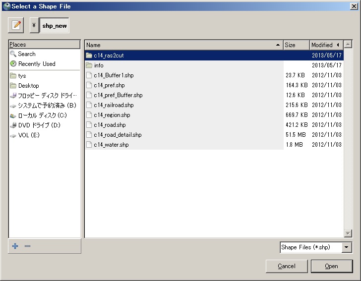 ここで、エラーが出た場合は、dbfのcharactor設定かShapefile自身のエラーですので、QGIS等を使ってShapefileをチェックして修正したください。