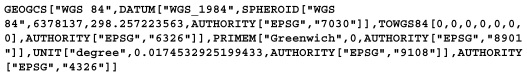 WKTに変換されたWGS84データを使用して、測地系を表わすosr.SpatialReferenceオブジェクトは、