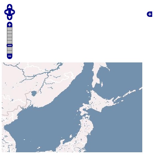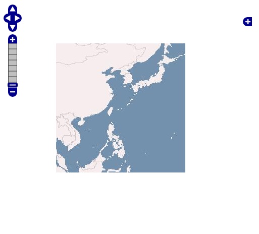 maxExtent(最大表示範囲)は、経度緯度で設定します。この例では、東経100度から140度、北緯0度から50度が最大表示範囲にになります。