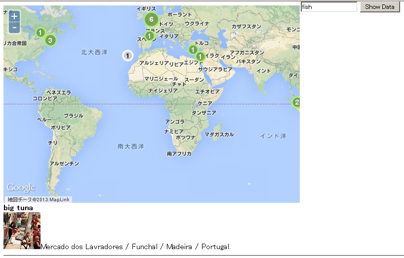 textにfishと入力して、show data buttonをclickして、cluster makerをclickすると、