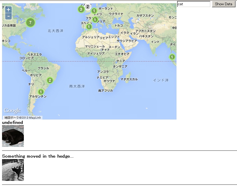 また、textにcatと入力して、show data buttonをclickして、cluster makerをclickすると、