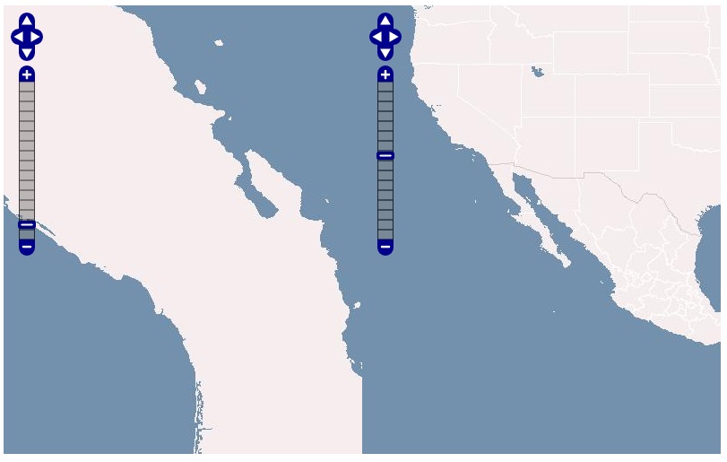 このexampleでは、2つのmapをそれぞれ独立して動くだけですので、次に連動して動くように修正してみます。