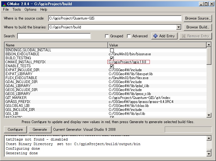 C:¥qgisProject¥build¥qgis1.9.0.slnをVisual C++ 2008で起動してcompileする方法もあるようですが、試していません。
