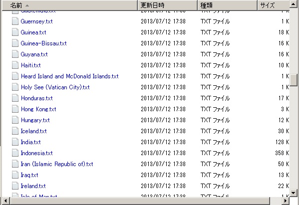 な感じで国名でtxtが作成されていることが確認できます。