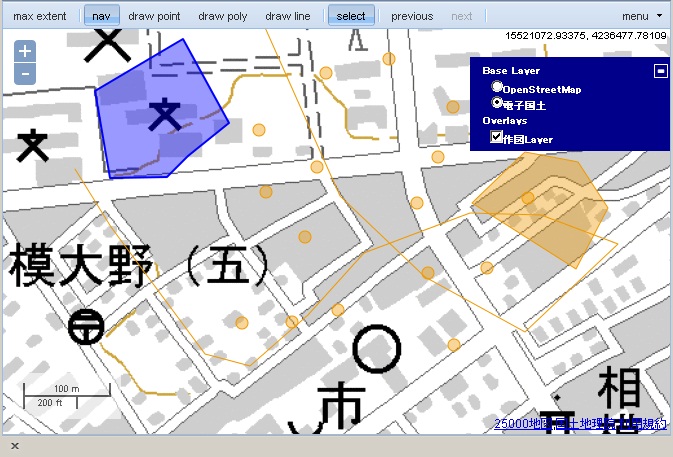 表示するmapの作成(Baselayerは、OpenStreetMapと電子国土)