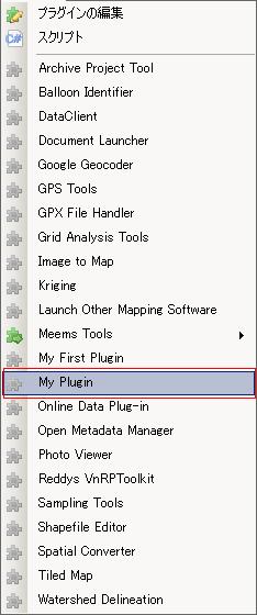InitializeでMapWindowのメニューにMyPluginを追加して、