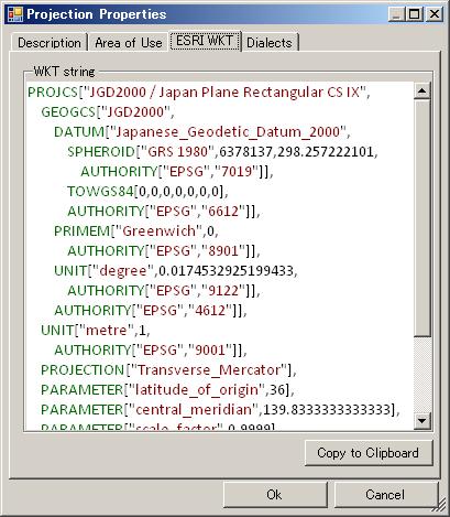 ESRI WKT Tabを表示した場合、