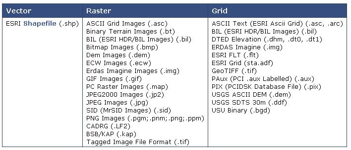 多くのraster grid data formatに対応しています。