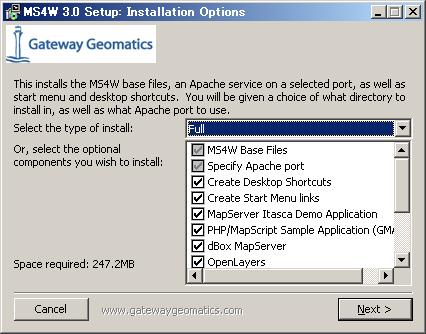 MapServerを動かすためのライブラリー等一式Internetよりダウンロードしてインストールしてくれます。