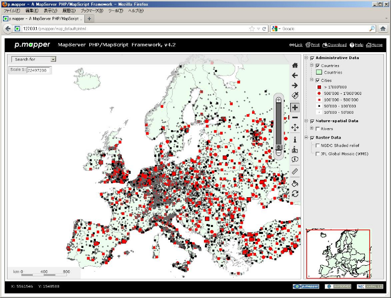 CentOS5.8上のp.mapperのデモと同じですね。これで、ms4w環境とLinux環境が同じになりました。