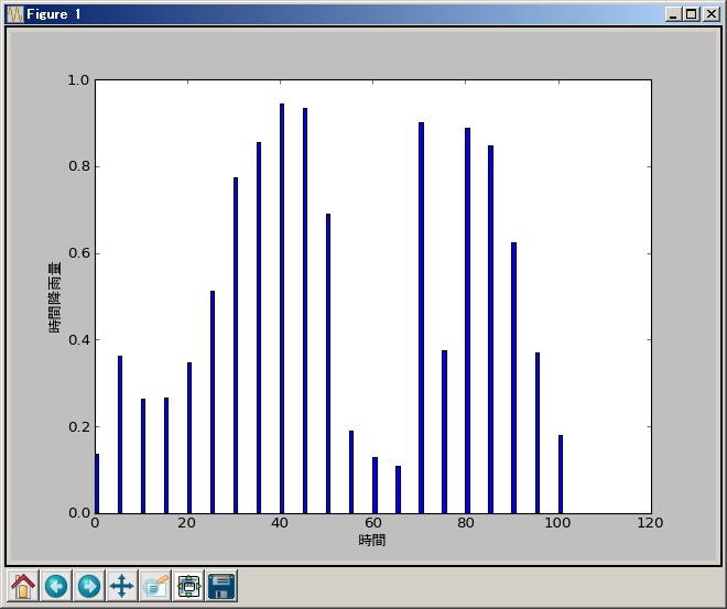 plt.ylabel(u’時間降雨量’, fontproperties=font_prop)