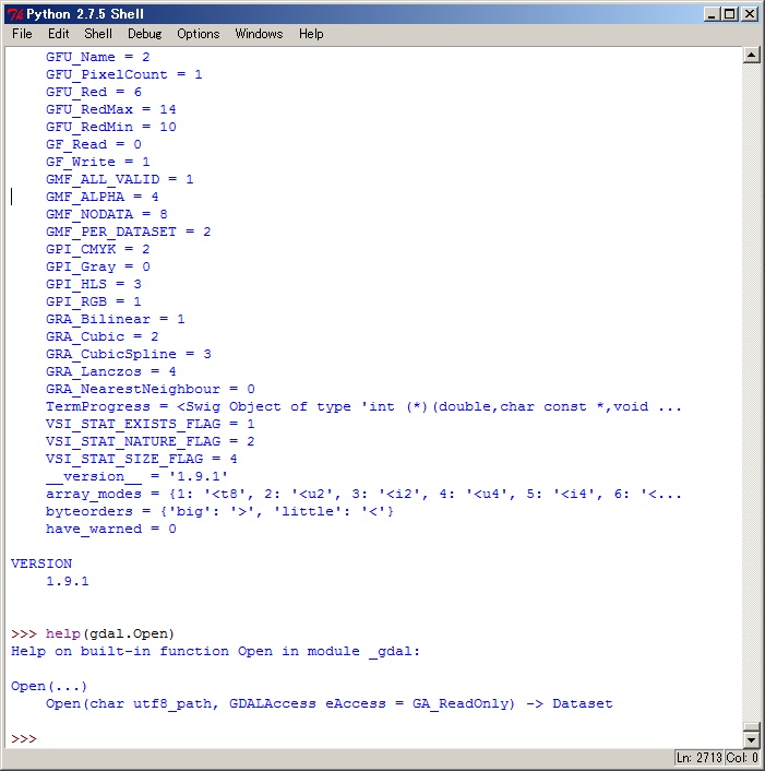 今回は、Python GUI Shellを使って、超~~簡単なGDALのexampleを作成しました。Numpyもinstallして作図も行いました。