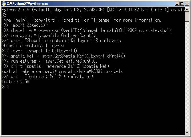 shapefile = osgeo.ogr.Open("F:¥¥shapefile_data¥¥tl_2009_us_state.shp")