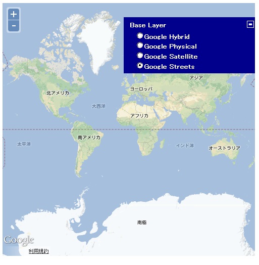 そして、LayerSwitcherをclickするとGoogle mapの表示typeを