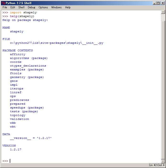 ここでは、Shapely-1.2.17.win32-py2.7.exeをdownloadして、installします。